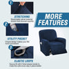*[4-PIECE STYLE]: This innovated recliner slipcover is 4 Piece style, including 2 arm pieces,1 center back of seat pieces and 1 center back of cover pieces which will provide all-round protection. Best fit sofa 27-39 inches wide (outside arm to outside arm, straight across). with right side pocket and continuous footrest. Each seat has two elastic loops at the back corners to be pulled through to the back of the recliner.