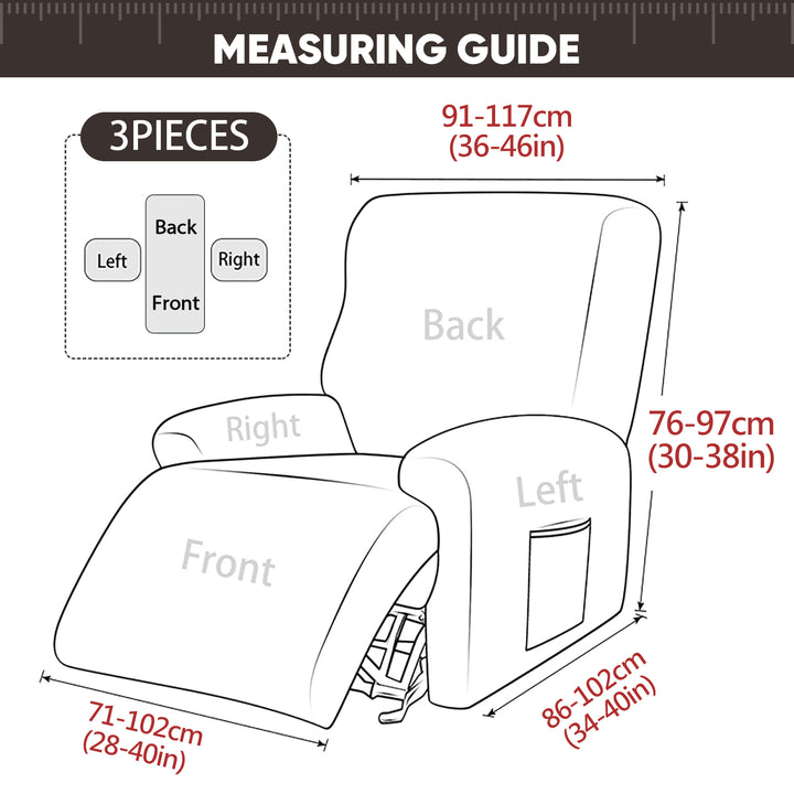 【PREMIUM STRETCH FABRIC】 Fits recliners 23-35" wide. Crafted from 88% polyester & 12% spandex, LavishCover recliner chair covers deliver superior elasticity for a glove-like fit. The breathable fabric adapts seamlessly to your recliner's curves while resisting pilling and fading