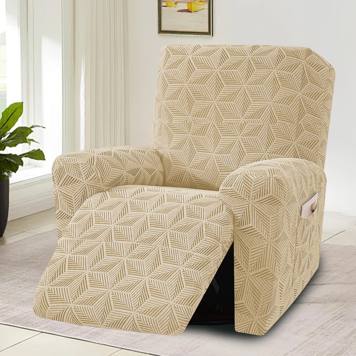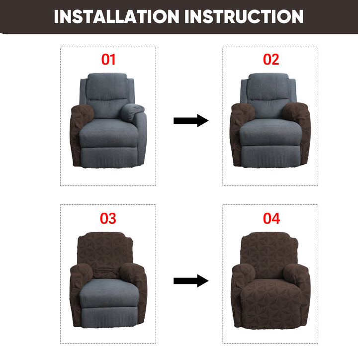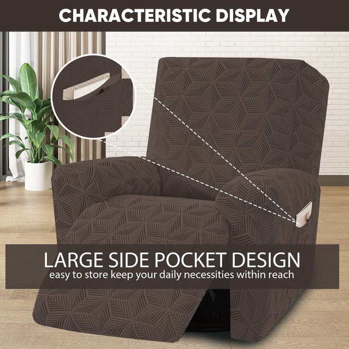 【PATENTED 4-PIECE DESIGN】 LavishCover recliner cover includes a seat cover, a back cover, a normal armrest cover and an armrest cover. 4 Pcs design allow the cover stay in place no mater how you move your recliner. Storage side pockets in both side