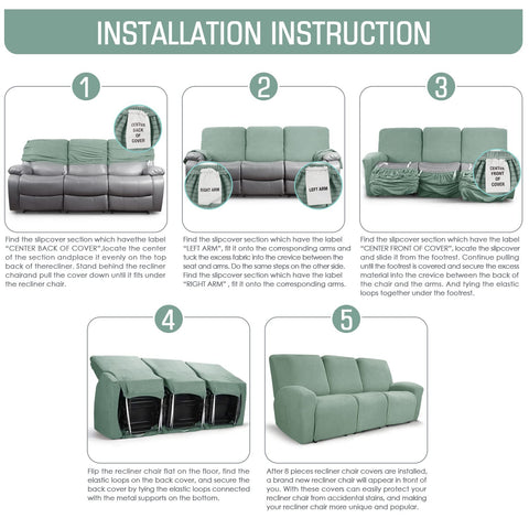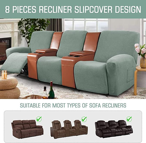 8 Pieces Stretch Non-Slip Split Recliner Chair Cover (3 Seater)