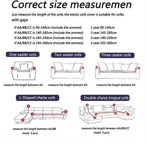 3 Seater+3 Seater (L-shaped), 1 Seater (90-140cm), 2 Seater(145-185cm), 3 Seater(190-230cm), 4 Seater(235-300cm) |
