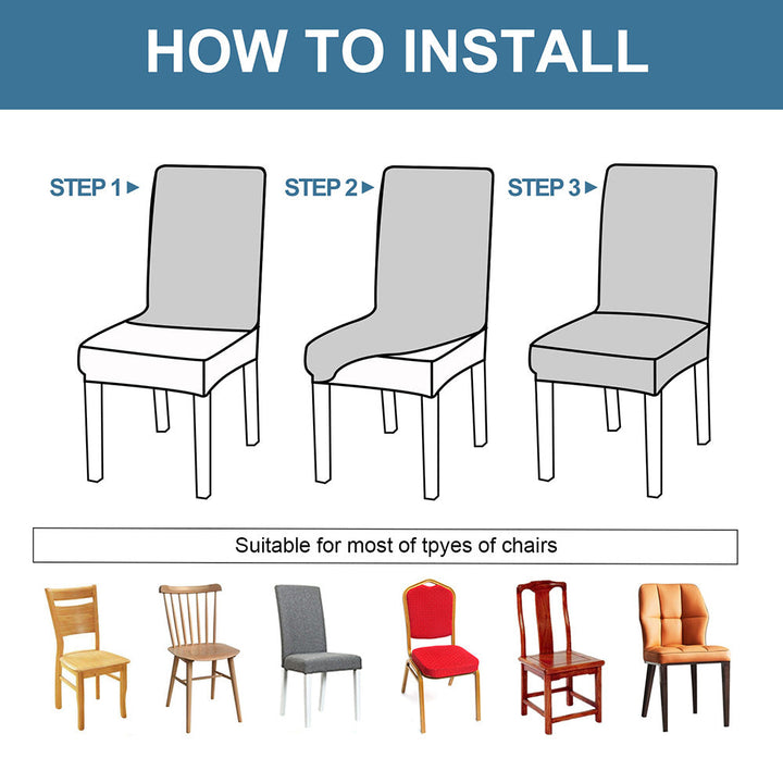 Stretchy kitchen chair cover very easy to cover the chair from the back to the seat and make small adjustments. Please hand wash or machine wash with cold water. Do not bleach or iron.