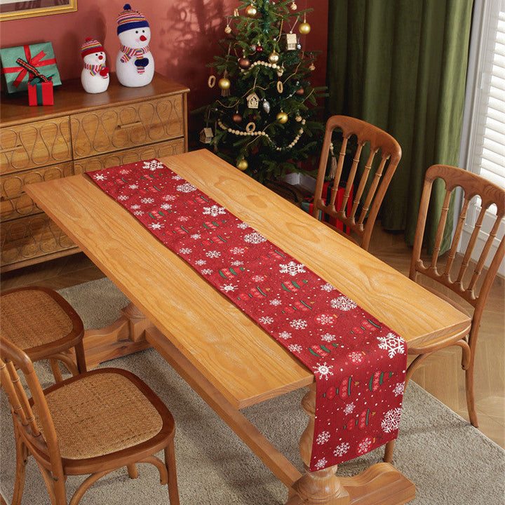 Using a Christmas table runner during the holiday season adds both style and function to your dining or display areas.A Christmas table runner, often adorned with holiday motifs like reindeer, snowflakes, or Santa, creates a visually appealing centerpiece, drawing attention to the table and enhancing the overall festive ambiance.A runner can be layered over a solid or Christmas-themed tablecloth for added depth and texture, making your table setting feel more polished and thoughtfully arranged.Unlike a full tablecloth, a runner can be used on various surfaces, from dining tables to sideboards or coffee tables, adding a festive touch to different areas of your home.