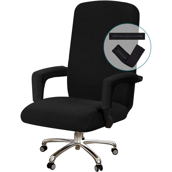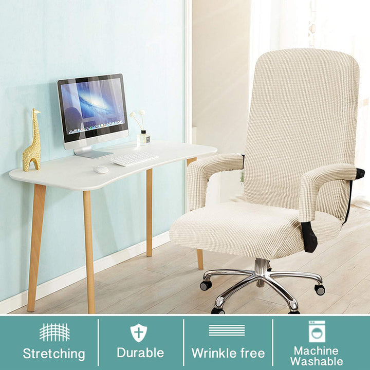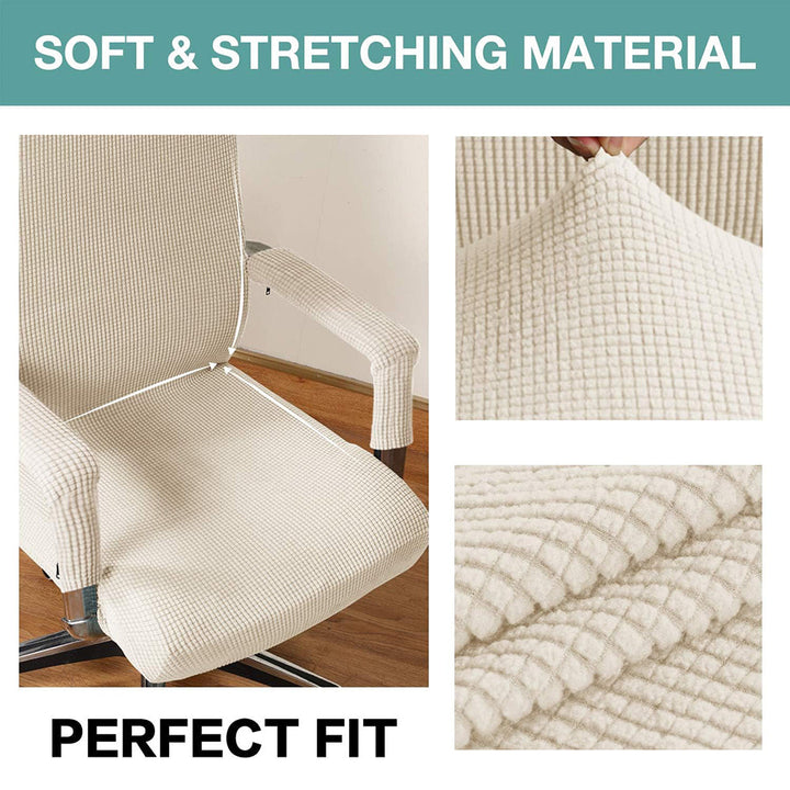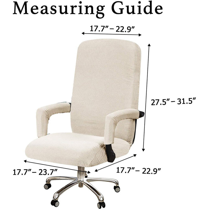 🤍PERFECT FIT: Our stretch office chair cover are one-size-fits-most. Always measure chair back width and back height before ordering: Fit for chair height 27.5-31.5", chair back width 17.7-22.9", seat width 17.7-23.7", seat length 17.7-22.9", thickness 1-4"