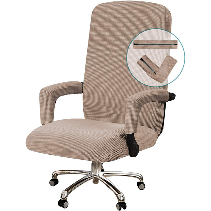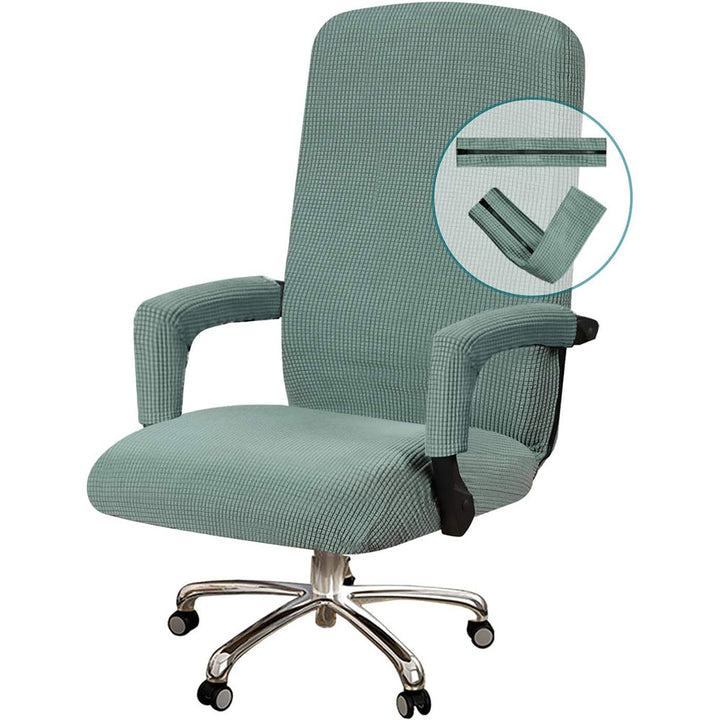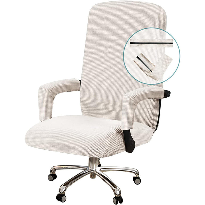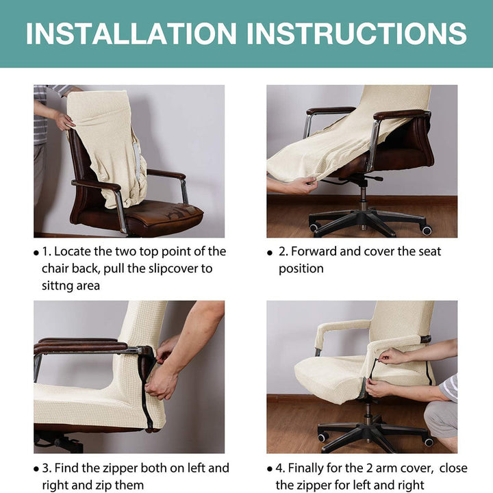 🤍EASY INSTALLATION WITH ZIPPER: The high-quality office chair cover is ultra comfortable and highly fit, zippers are designed on both chair back sides for facilitate fixation and using. Morever, bonus with 2 matching armrest covers could helping you relax your arms and reduce elbow pain