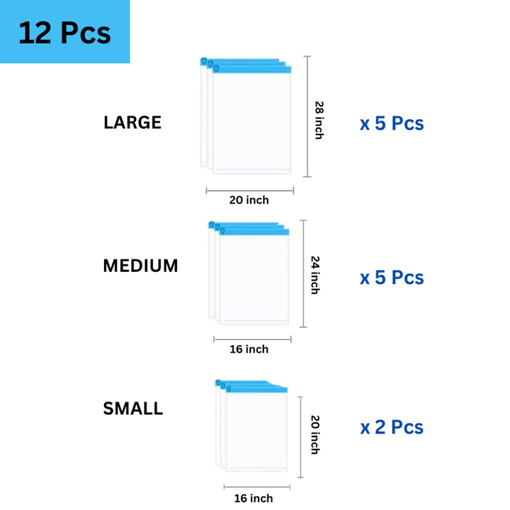 12 Pcs, Small, Medium, Large |