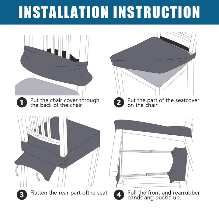 Stretchy chair covers very easy to cover the chair from the back to the seat and make small adjustments. Please hand wash or machine wash with cold water. Do not bleach or iron.