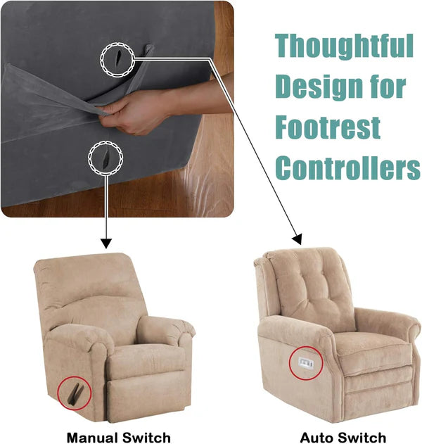 Velvet Stretch Recliner Chair Covers Anti-Slip Armchair Covers